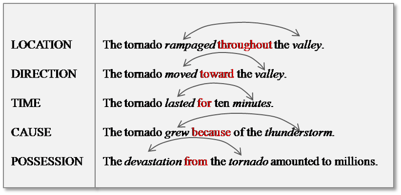 On the other hand, adverb prepositional phrases modify a verb, adjective, or adverb. They usually tell when, where, how, why, or to what extent (how many, how much, how long, or how far), and under what condition.