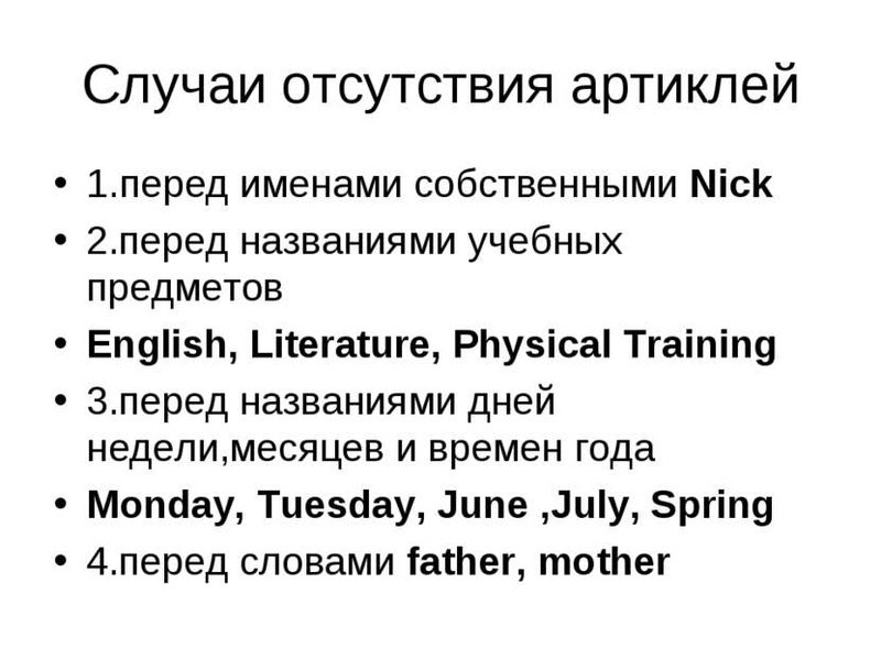Отсутствие артикля. В английском языке понятие артиклей ни в коем случае нельзя опускать - они не просто играют роль, скажем, предметов, а более точно обозначают признаки тех или иных слов. Об этом нужно поподробнее поговорить.