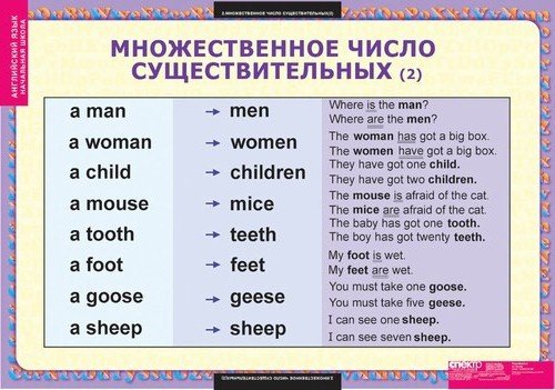Образования множественного числа существительных в английском языке